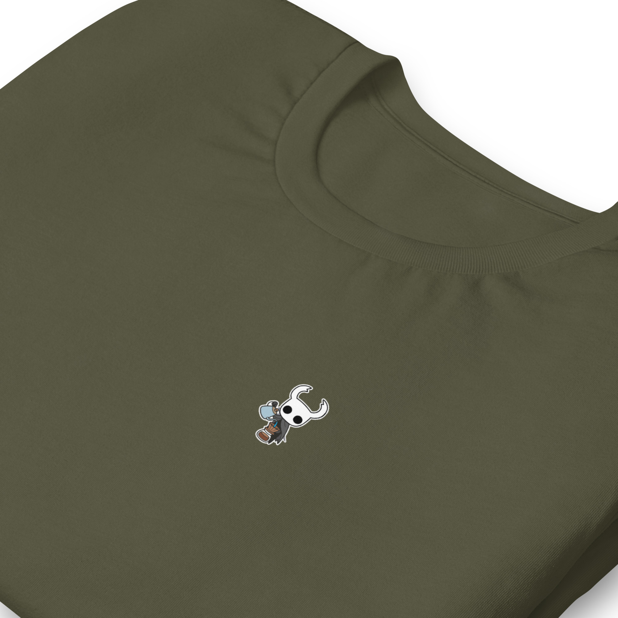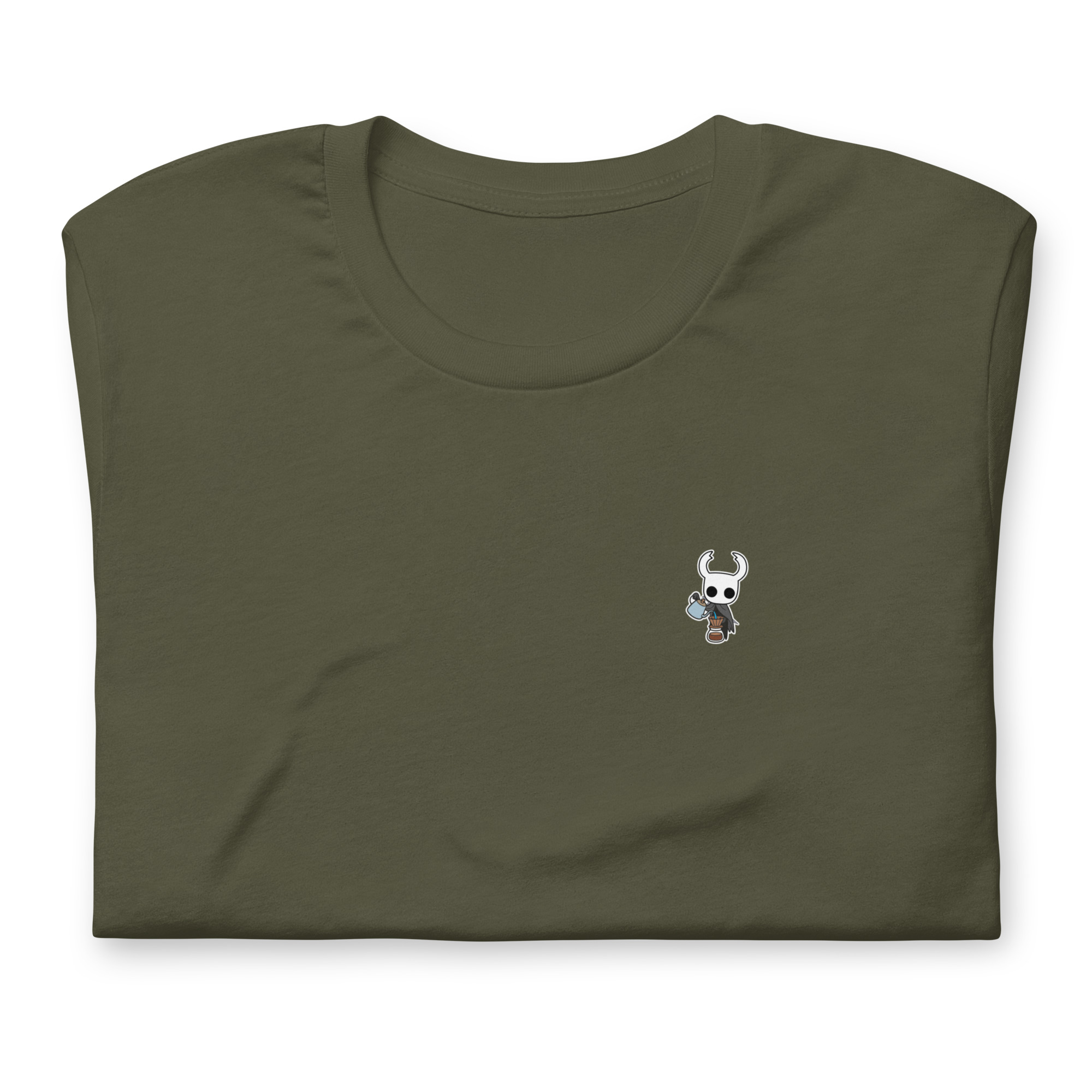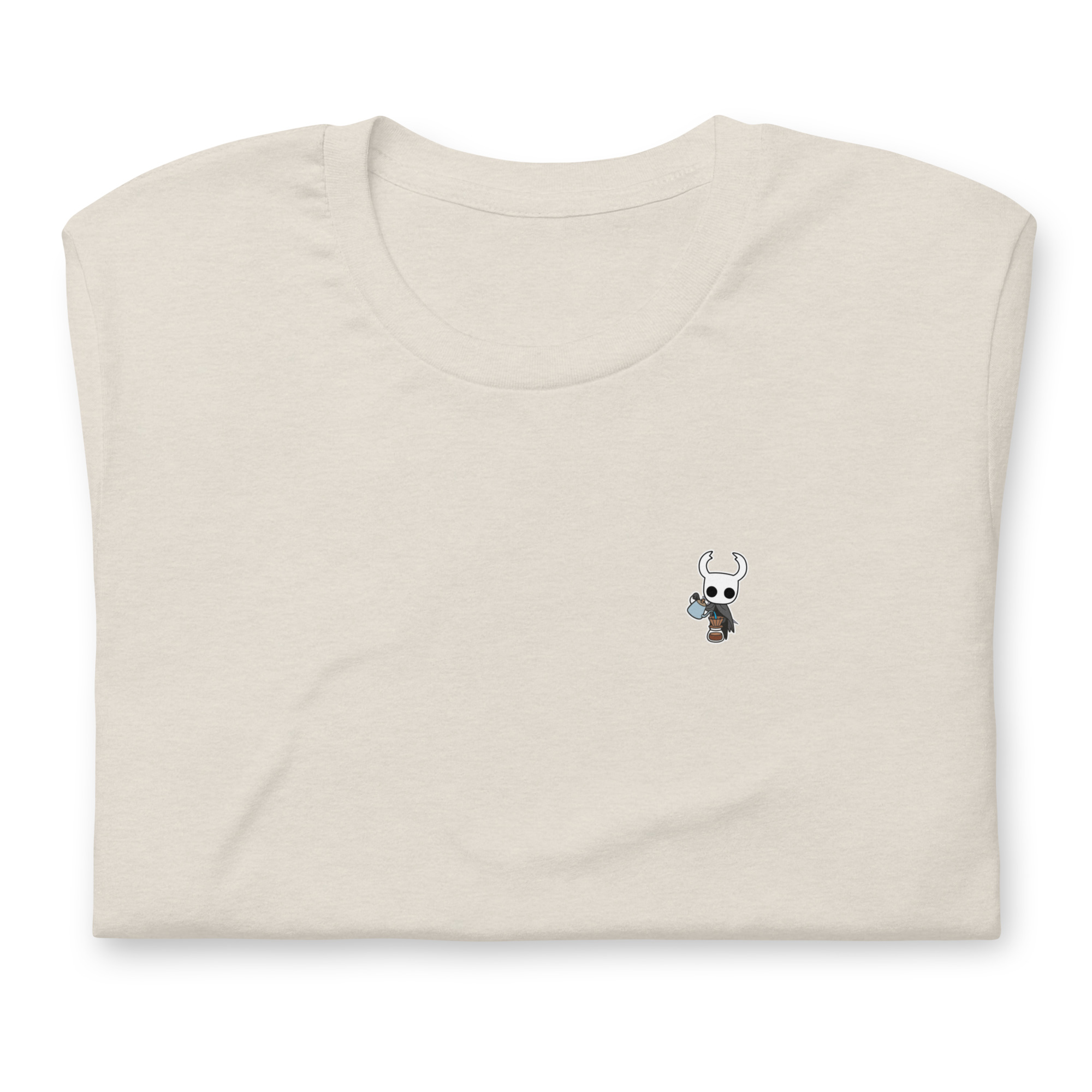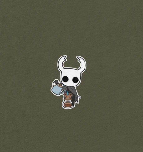 Dicen que hasta en las profundidades del Abismo hay tiempo para un buen café. Esta camiseta muestra a The Knight en su faceta más humana (o insectoide): preparando una V60 con la misma precisión con la que esquiva ataques en Hallownest.